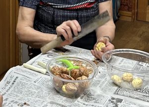 上手にむいた栗や渋皮がとれてしまった栗を見せ合ったり、楽しい時間を過ごしました
